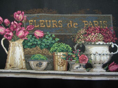 ピコットさん クロスステッチの作品です。私が刺しました・・・かなり気長にね~花の色合いや鉢の雰囲気が好みです。ピコットさんの作品も楽しみにしていますね~^^