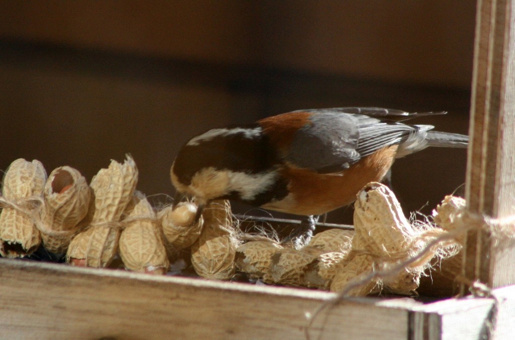 こちらは殻からまさに中のピーナッツを取り出す瞬間のヤマガラ君。