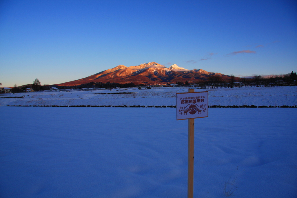 高速道路反対の看板が美しい自然の中で悲しく時を刻んでいるように見えます。
