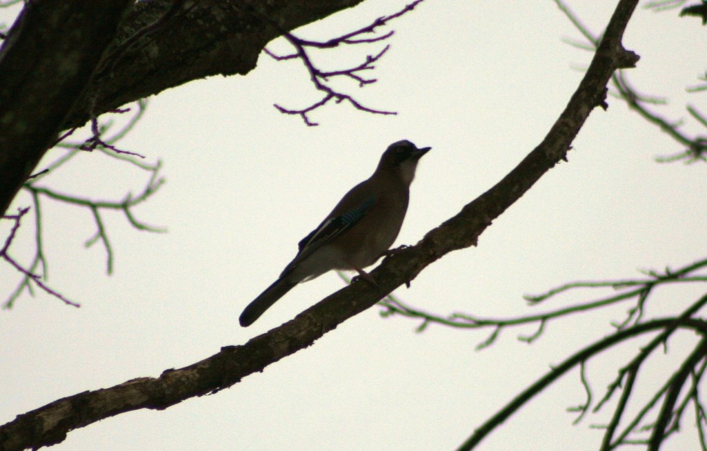 用心深いカケスは絶対に近くには来てくれません。庭の栗の大木の上の方にとまっているのを撮りましたが、やはりぼやけてしまいます。