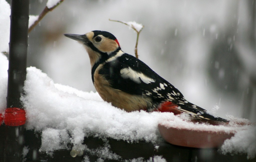 雪の中で、赤い模様が際立ってみえますね。 観察していると鳥の社会の厳しさも見えてきたりして、面白いですね^^