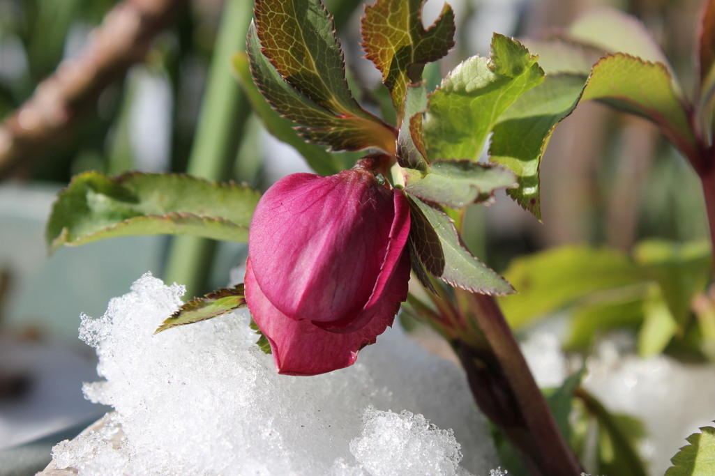 雪の下からこんな生命力あふれる色が生まれるなんて。いつ咲いてくれるのかなー。たのしみですね。