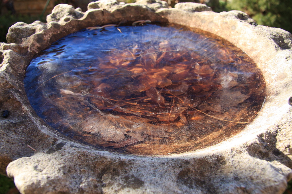 秋に落ちた枯葉を閉じ込めて、凍りついてしまいました。