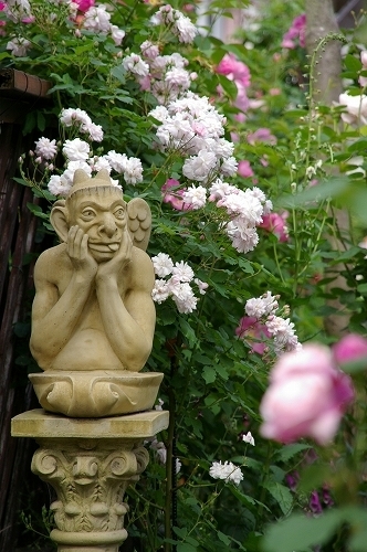 薔薇とホーカルポイントのガーゴイルがなんとも言えない良い調和です。