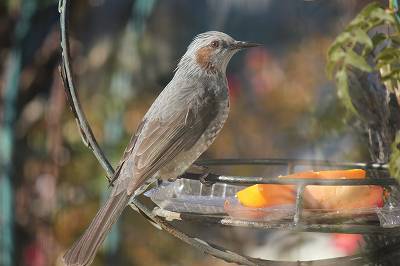 今日はヒヨドリとメジロが交代でみかんを食べに来てくれました。メジロに比べてヒヨドリは大きいですね!