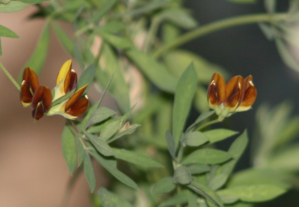 外は霧氷の世界なのに、サンルームの中は別世界。今は先日のニオイスミレのほかに、このマメ科のロータス ブラックムーニーが可愛い花を咲かせています。