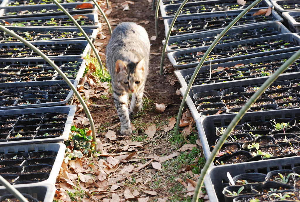 花苗いっぱいですね。ももちゃんお散歩楽しいですか?
