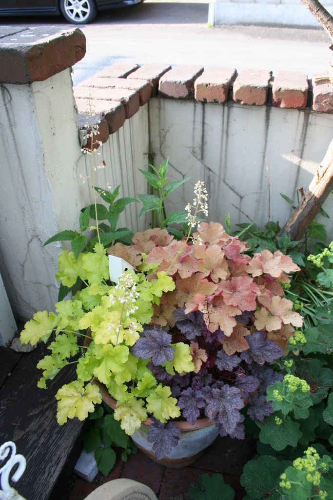 葉の色の取り合わせがなんともきれいですね。ヒューケラ、好きです。