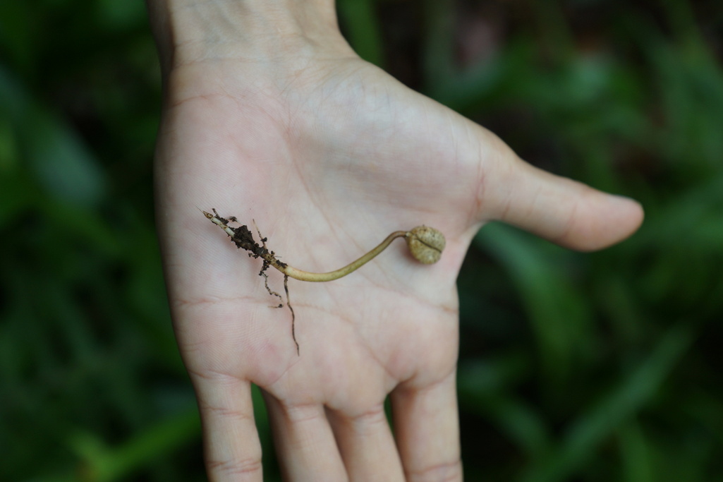 焙煎された豆しか見たことがないので、根が出てると不思議な感じがします。でも豆から根が出るのは当たり前ですね。