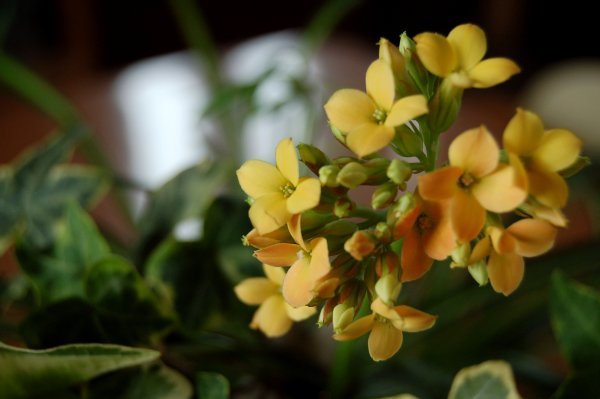 窓辺の柔らかい日差しをあびて小さく可愛い花カランコエが咲いてます…☆