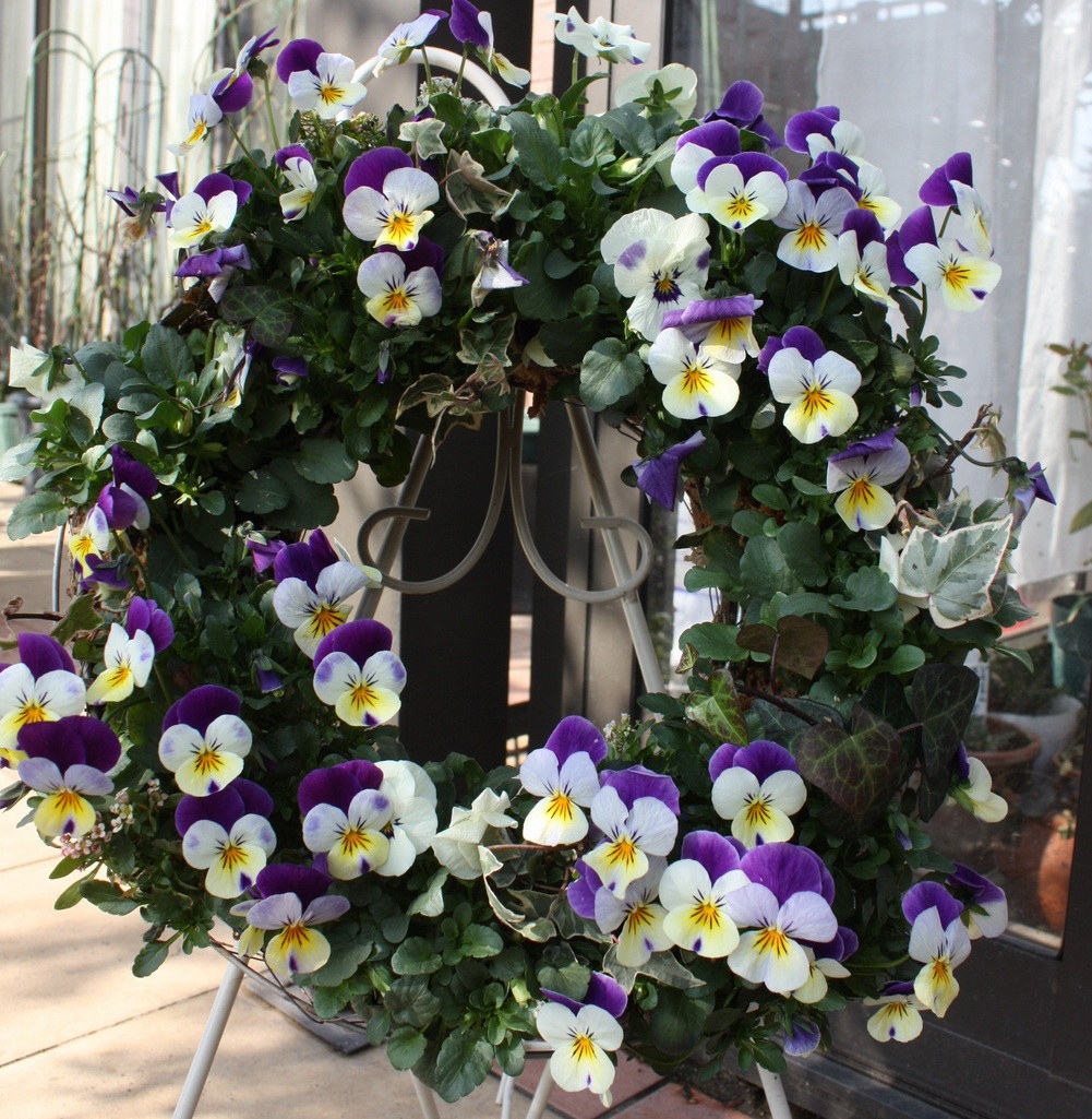 豪華ですね。ビオラもハンギングにしたら立体的になってよいですね。