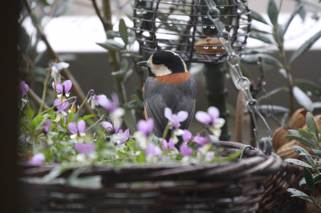 かわいらしいビオラの中で、ヤマガラがさらに愛くるしく写っていて、本当にモデルさんのようです~♪とりのなん子さんといつか、鳥談義をしたい、と夢見ています~♪