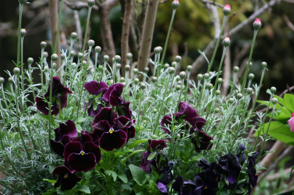 すごい数の蕾ですね!シルバーリーフと濃い紫のビオラが素敵な組み合わせですね(*^^*)