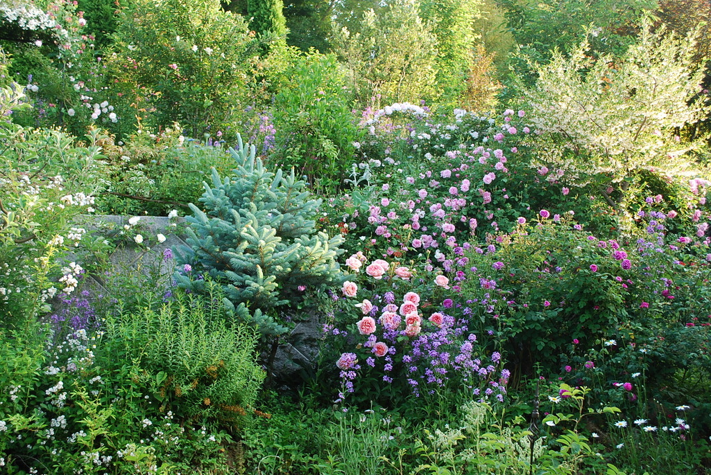 バラだけでなくさまざまな植物がお互いを支えあっているような景色です。抜群の植栽センスですね。