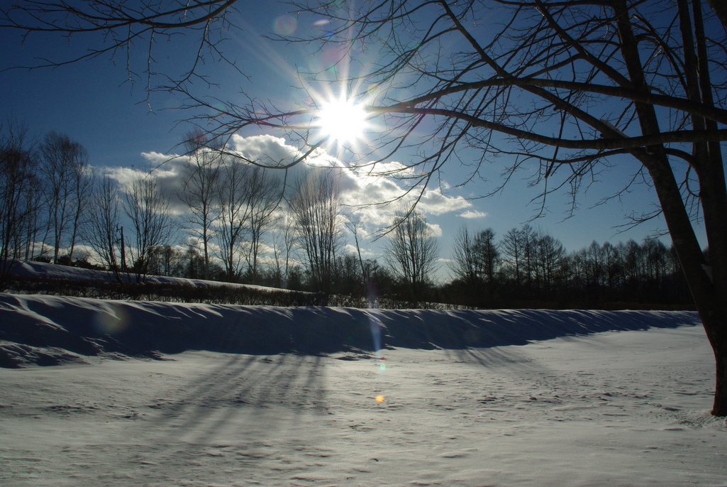 美しい一枚ですね!輝く太陽と雪景色が素晴らしいです(*^^*)