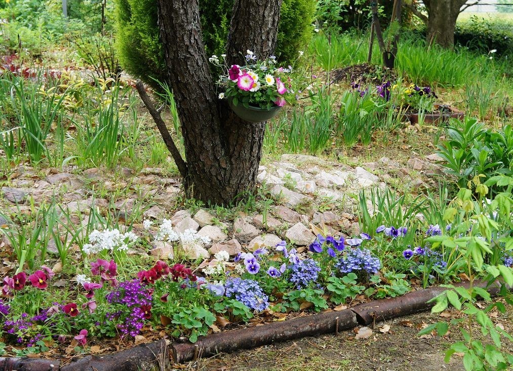 春を待ちわびている感じが、パンジーやビオラ、球根たちの葉っぱで伝わってきます♪