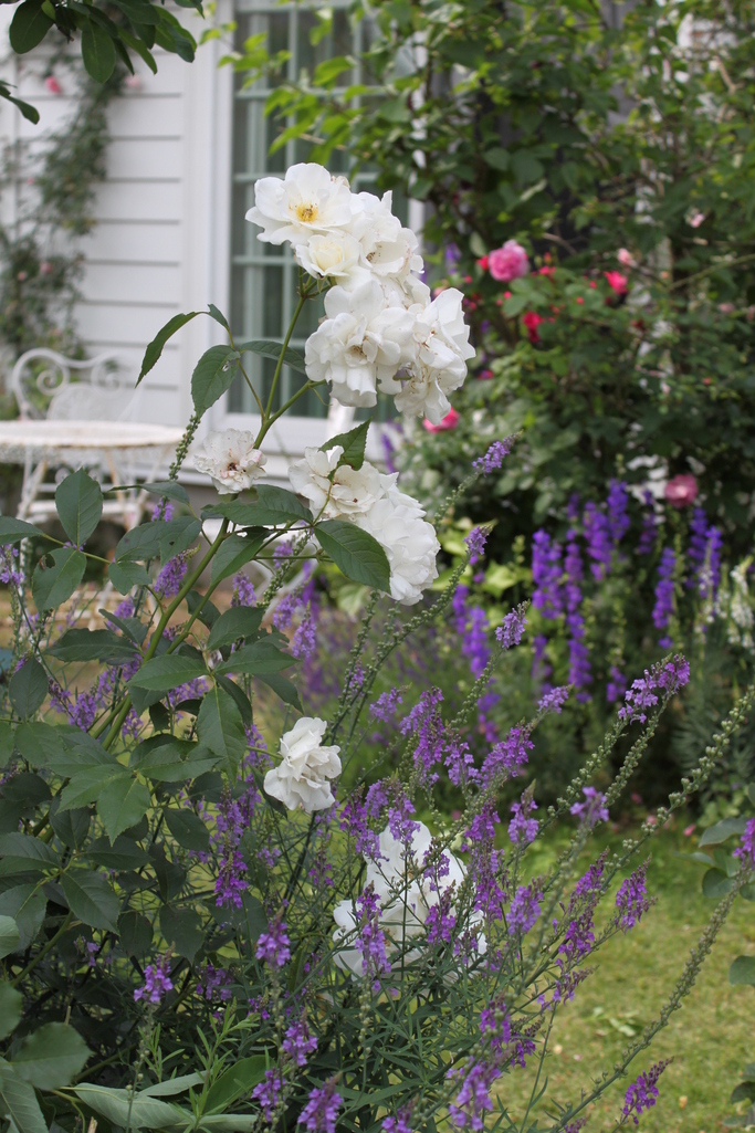 人気のアイスバーグ。残念なことに、わが庭では、あまり花つきは良くありませんが、紫色のリナリアとのコントラストが美しい