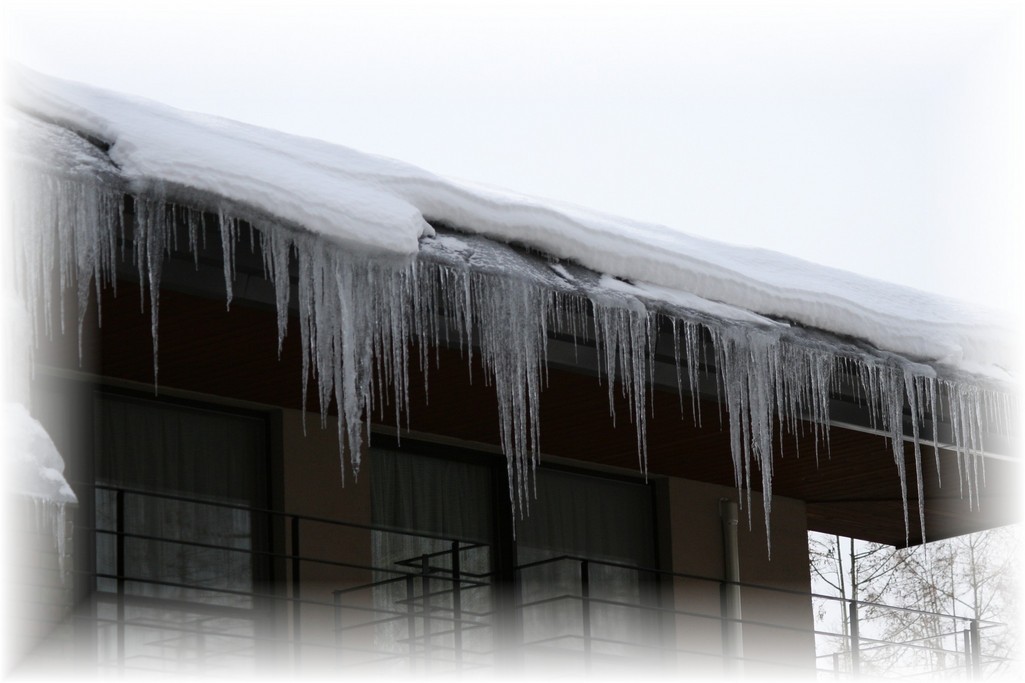 お向かいの寮の屋根のツララです。長いのは1m以上あります。