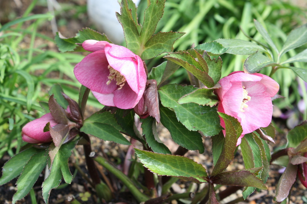 ローズピンクのクリスマスローズは横向きに咲いて見やすいです。