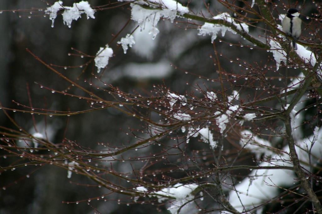 昨日半日ほど降った湿った雪が、夕方には大分解け始めていたのですが、それが夜のうちに凍り付いて氷の花が咲いていました。