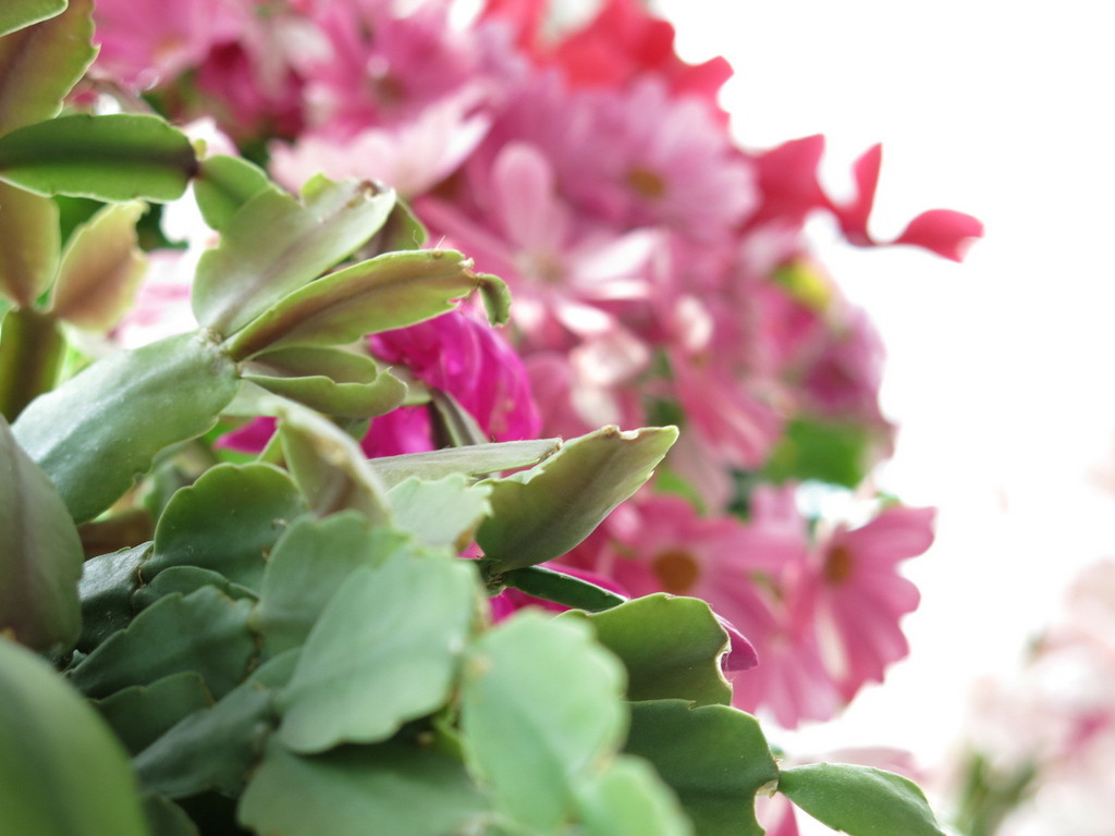知人のお店で大切に育てられている室内の花々です。ピンクの花が可愛い〜。