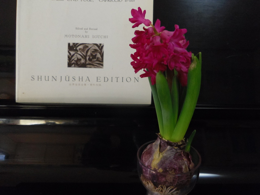 お久しぶりです。もう二番花なんですね~。小さくても可愛いですね(*´▽`*)後ろの本?CD?も気になります。