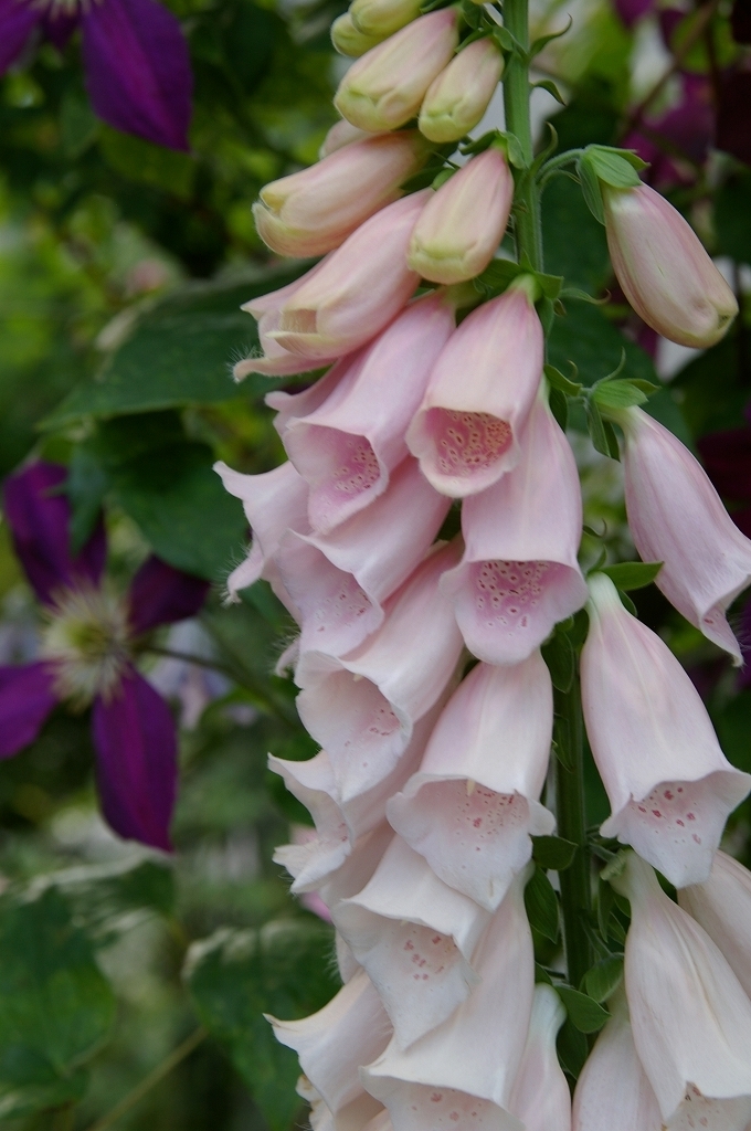 とても素敵なジキタリスですね!紫色のクレマチスとの相性もばっちりですね~♪ジキタリスは存在感があって私も大好きです(^_-)