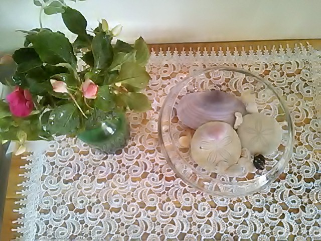 貝殻を水鉢に入れて飾ってみました
