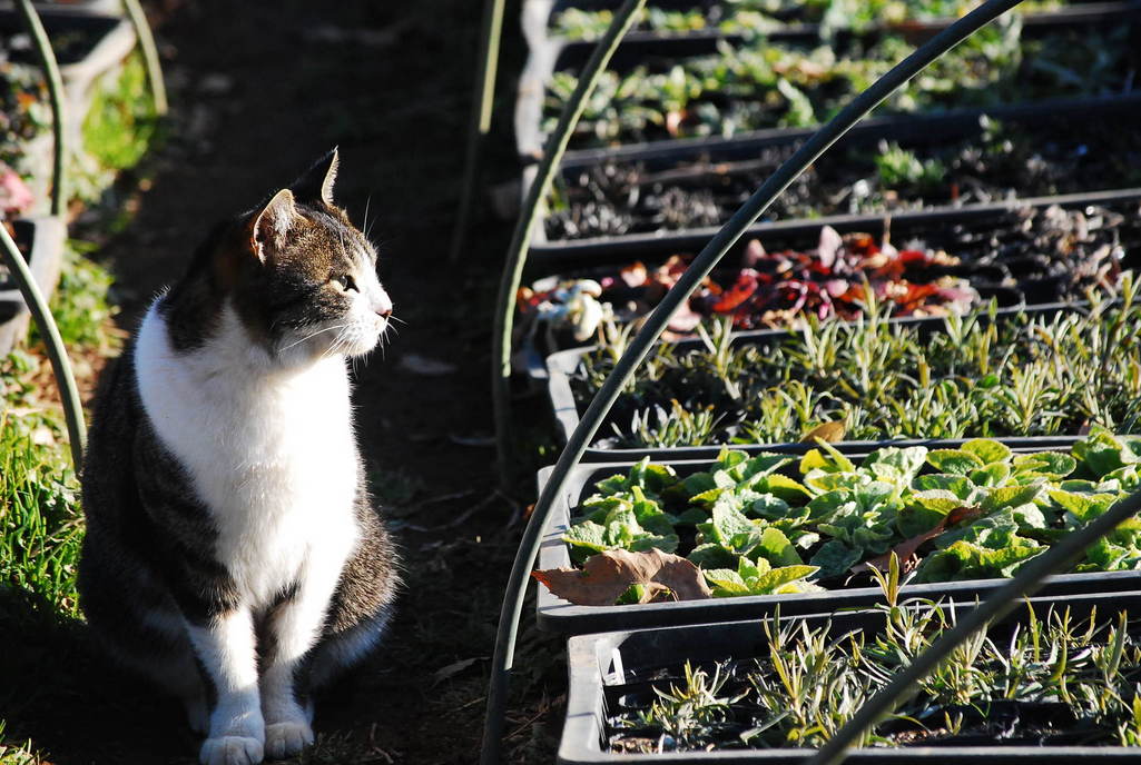 ハウスの中のたくさんの苗と、外を見つめる猫ちゃんが花いっぱいの季節への思いを伝えてくれているようです。とってもいいお写真ですね。大好きです(*^^*)