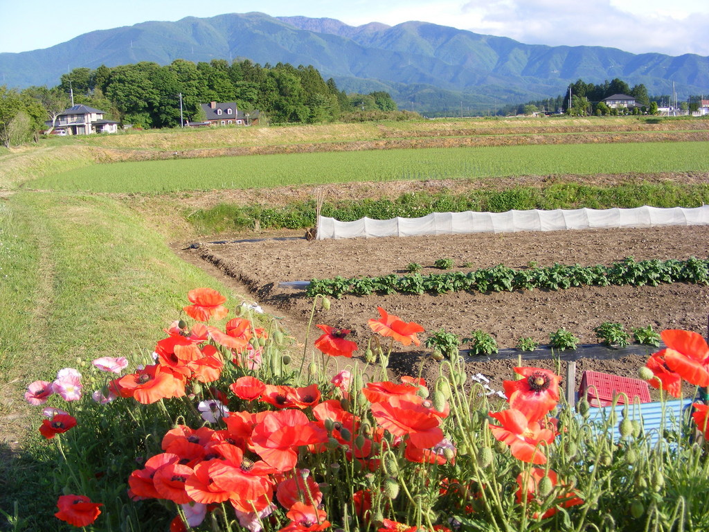 ポピーと田んぼ畑