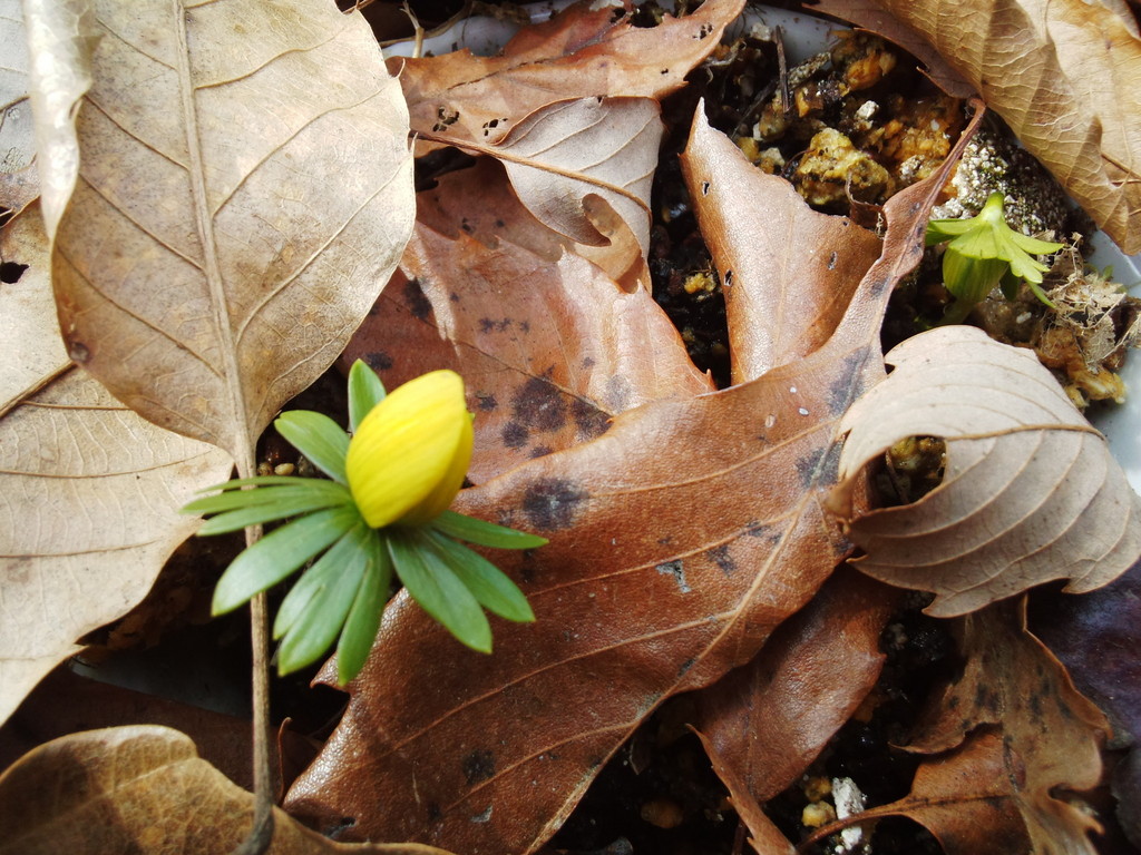 枯葉の隙間からひょこと鮮やかな黄色いお顔。こんなの見つけたらめちゃくちゃ嬉しいですね^^