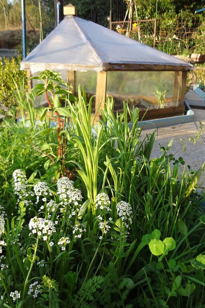 葉が青々と茂ってきましたね(*´▽`*) 手前の立ち性のアリッサムみたいなお花はなんですか?