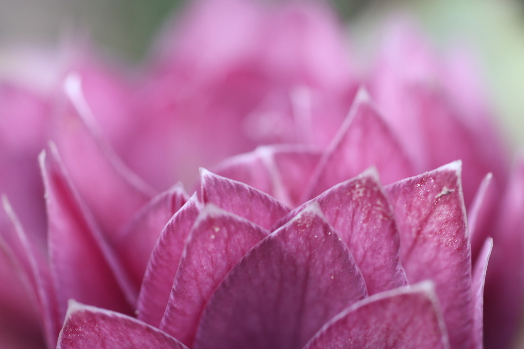グレープ色のクリスマスローズの花弁をよく見たら、先だけがちょっと白く色が抜けてました。とんがった花弁はハスの花みたい。