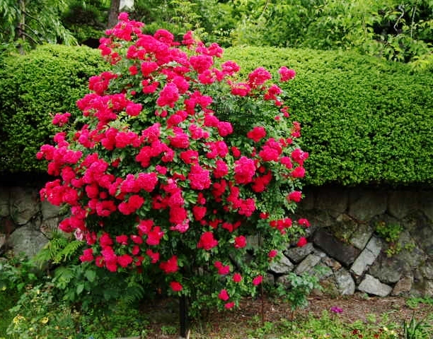 バラの木っていうのはこういうのを言うんでしょうね(^_-)-☆ グリーンに映えて素敵です。