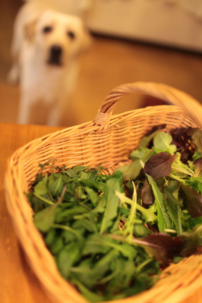 ベビーリーフ美味しそう!気にするワンちゃんの表情がまた可愛いですね^^