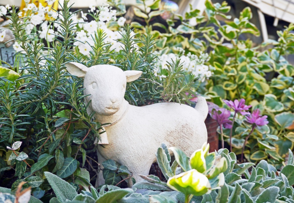 真っ白の置物はシンプルで私もいくつか使っています。そのほか、自然な石やテラコッタのような素材も場所によってはとてもよいと思います。そして、それらが年月を経て苔むしたりして自然に溶け込んでくると最高ですね。
