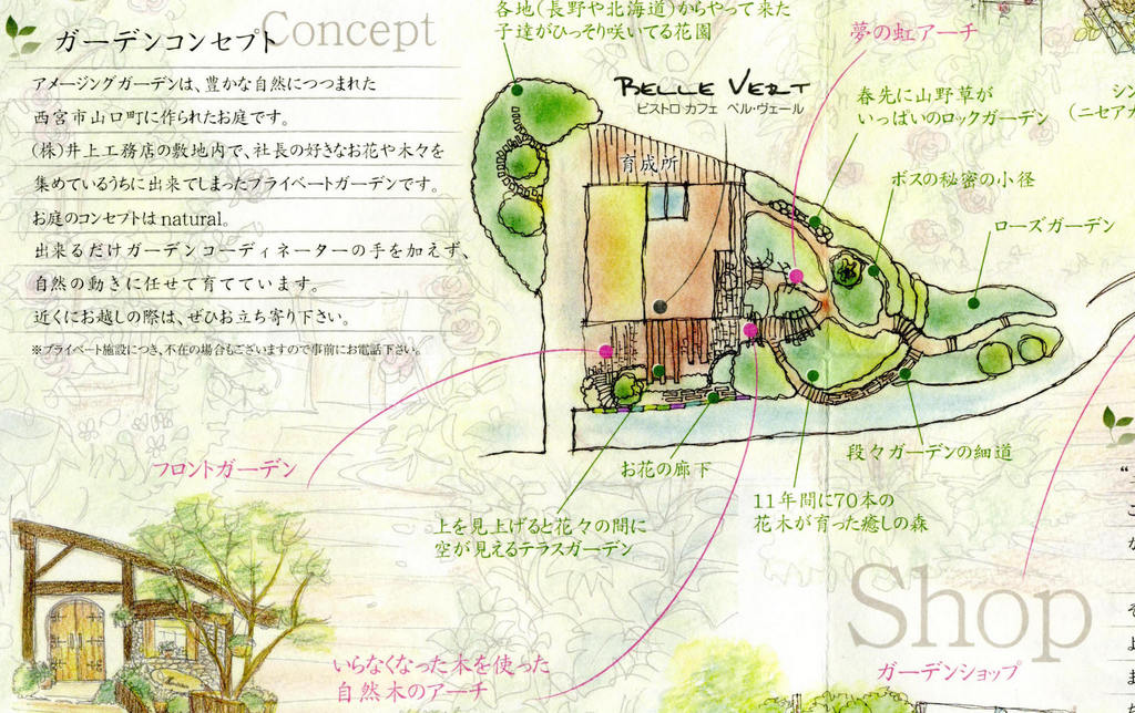 字が見えにくかったので、ガーデンの部分だけアップしました。以前ショップのあったトーレーラーハウスと草屋根のエコハウスは、アメージングガーデン外構部門とアメージング・ナチュラル・ライフ。こちらの方は地球にやさしく、こころ豊かに過ごせる住まいづくりを目指しています
