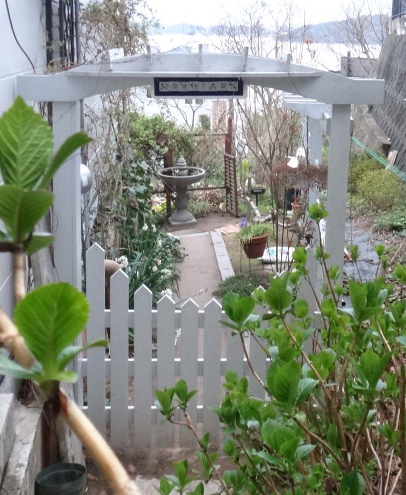 あじさいの葉がもうこんなに大きくなって・・早いですね~。白いゲートが素敵です。