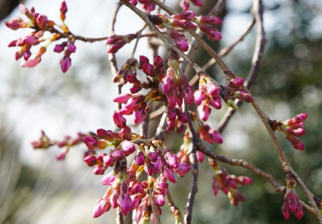 しだれ桜の蕾が膨らんできました、何時咲いてくれるかな?