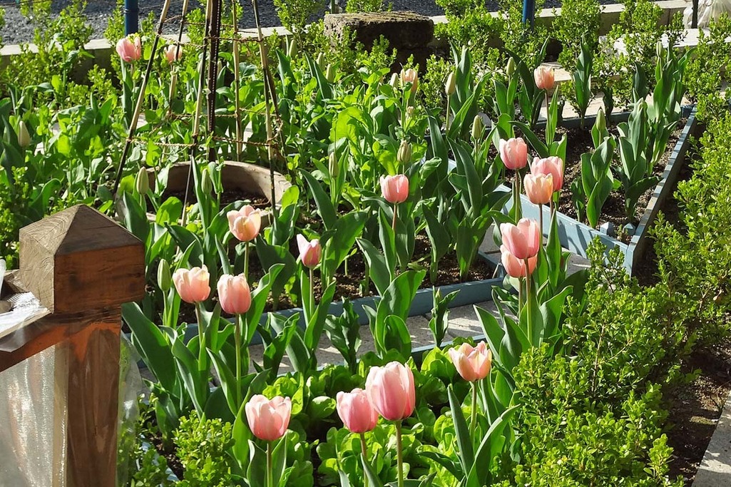 こんなポタジェ素敵ですね!!チューリップもたくさん咲いていますね。