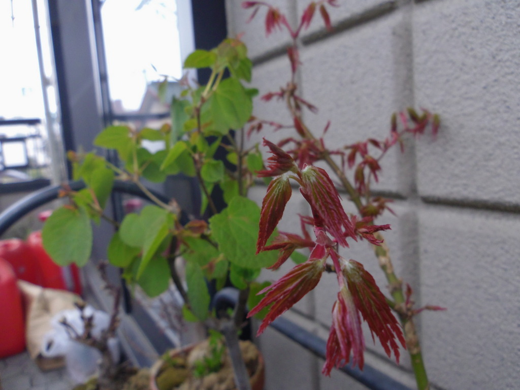 ミニ盆のモミジ。奥はカツラさん。