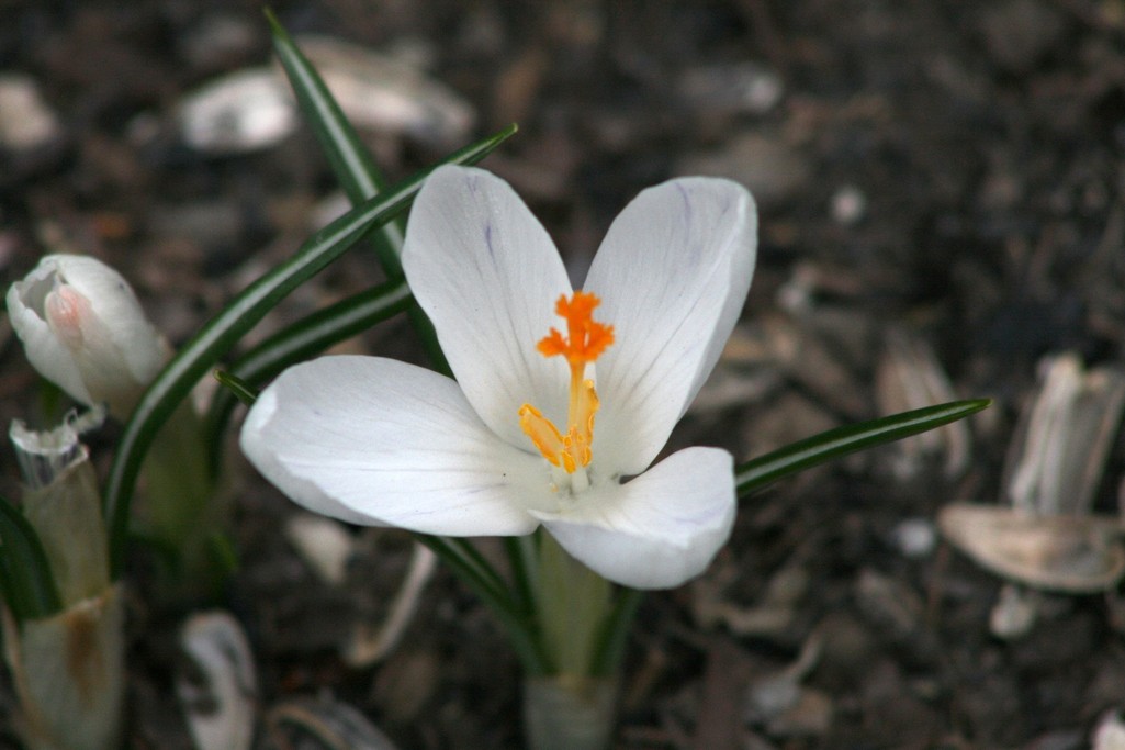 これはアイスバーグの根回りに植えているクロッカスの白花。毎年庭で一番先に春を告げてくれます。