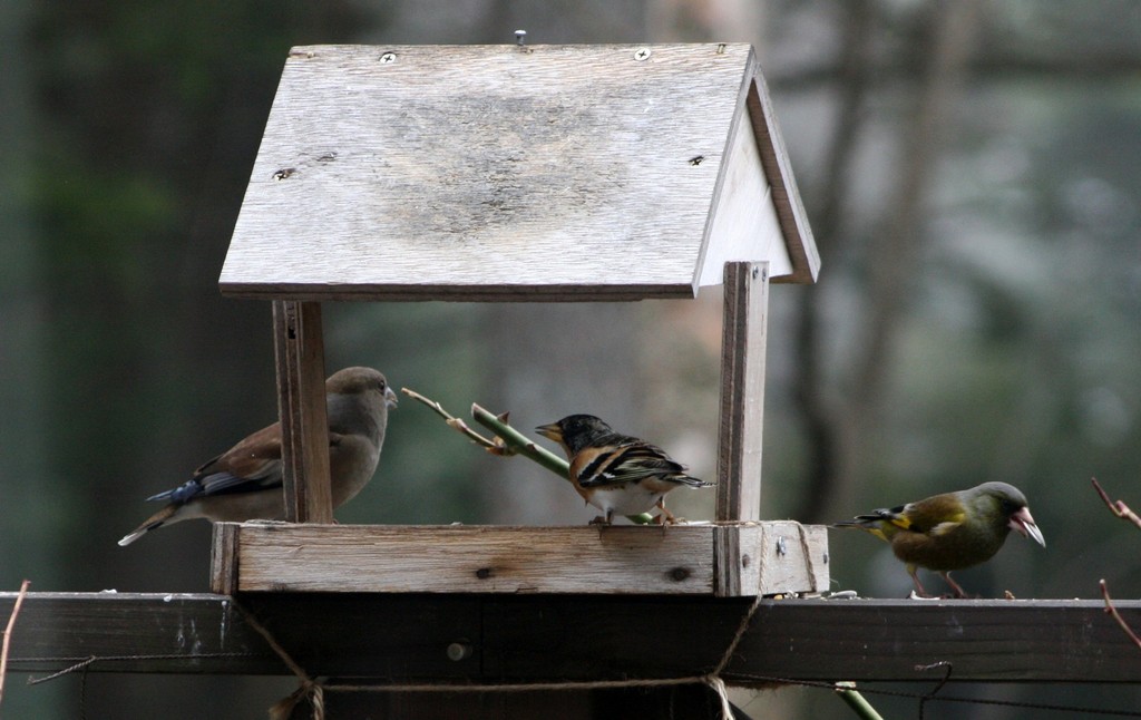 軽井沢にも春の気配が漂い始めていますが、今朝は氷点下にはならなかったものの霧に包まれ肌寒い朝となりました。でも庭の野鳥たちは相変わらず元気。シメ・アトリ・カワラヒワ・イカルといったアトリ科の鳥たちが集合しています。