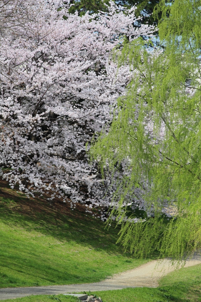 桜と柳の新芽のコラボ、あまり見たことが無いですが、実にさわやかですね^^