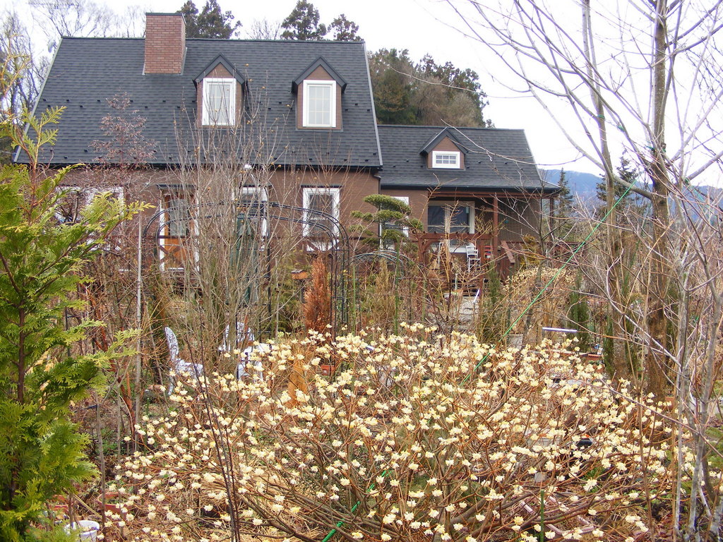ミツマタの花ですね? 冬は細い枝だけで目立たないのでしょうが、春にはこんなに沢山の淡い黄色の花で丸い樹形が顕われて、本当に春はイイですね。