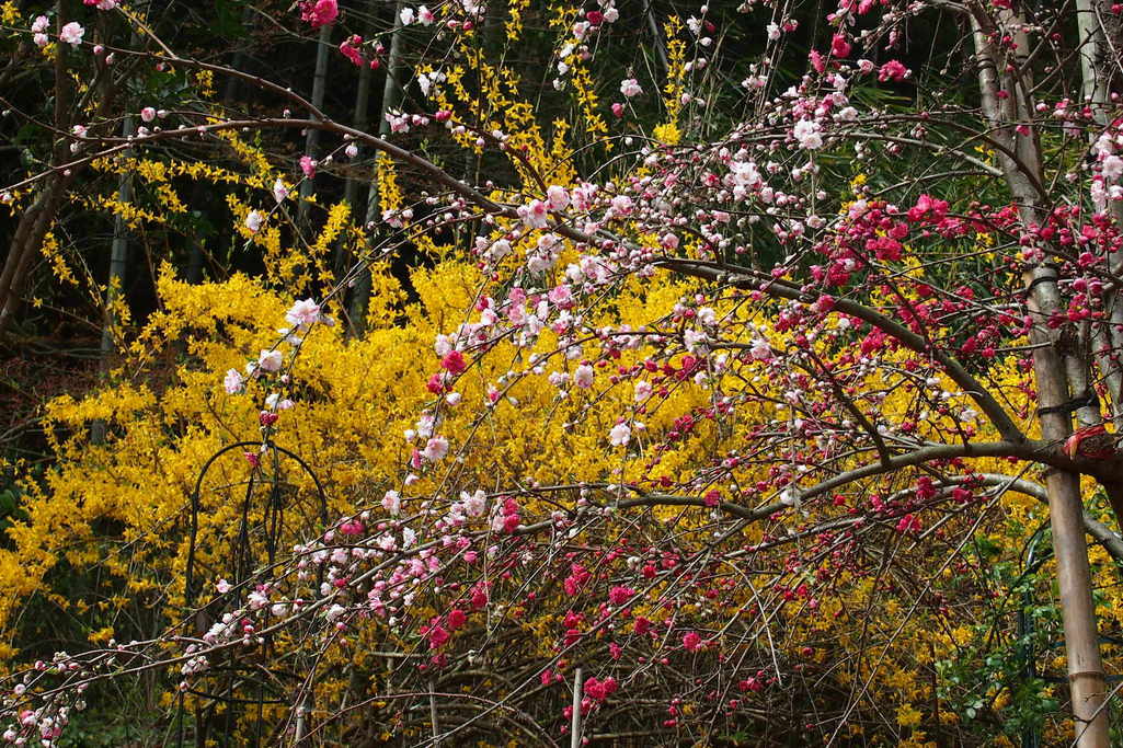 とても春らしい景色でいいですね。桃の花色の薄いのと濃いのが混じってきれいです。