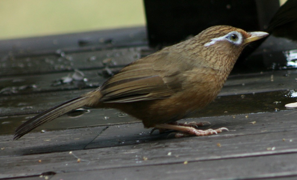 イカル軍団の来襲に気を取られていたら、足元で見たことのない鳥がこぼれたエサをつついていました。調べてみたらアライグマや魚のブラックバスなどとともに侵略的外来種ワースト100にリストアップされているガビチョウという鳥でした。