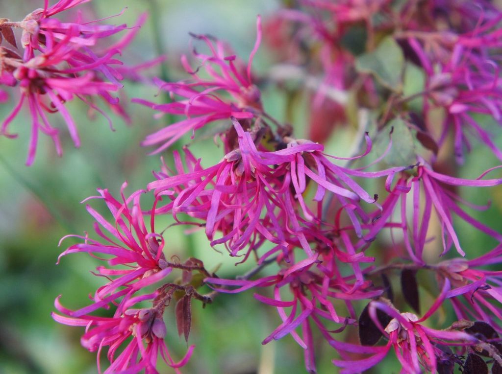 春いちばんで咲く黄色のマンサクはよく見かけますがトキワマンサクはピンクなんですね。花火のようで可愛いです。