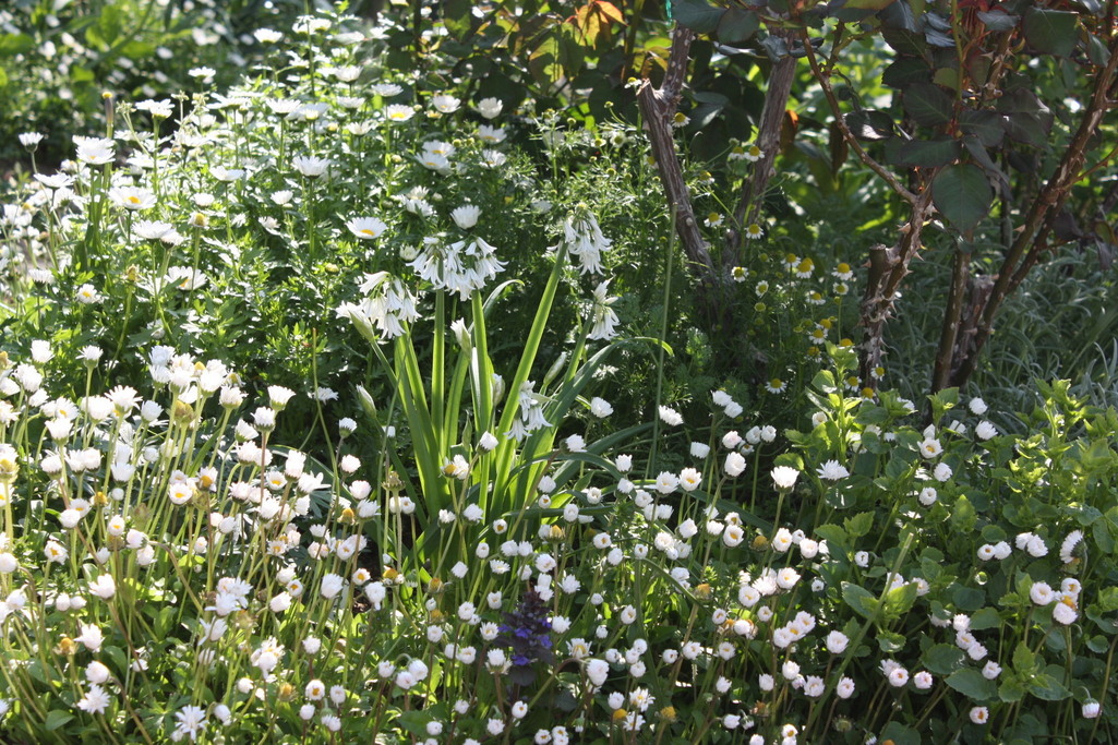 私も白と青のお花が大好きです。我が家のホワイトガーデンには強いて少しだけブルーも入れています。