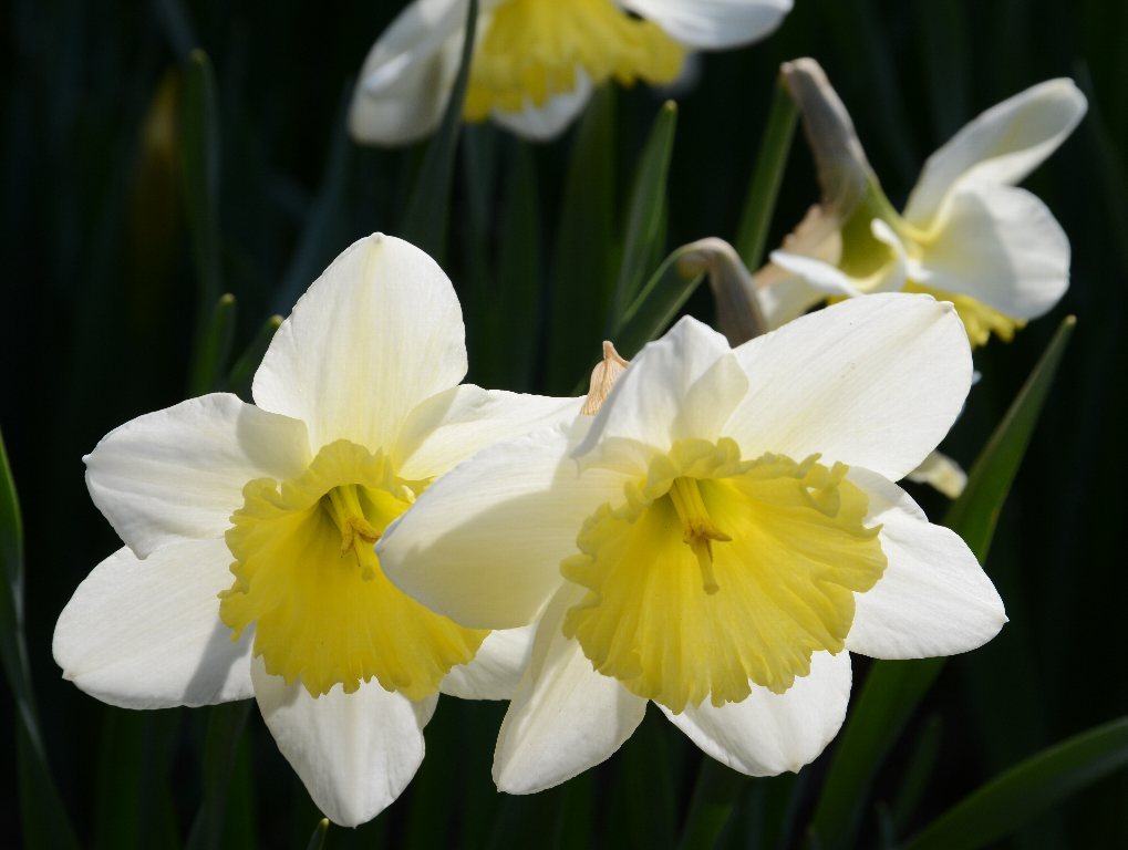 雪の日の写真はチューリップの芽です。あの日より今は少し大きくなりました。